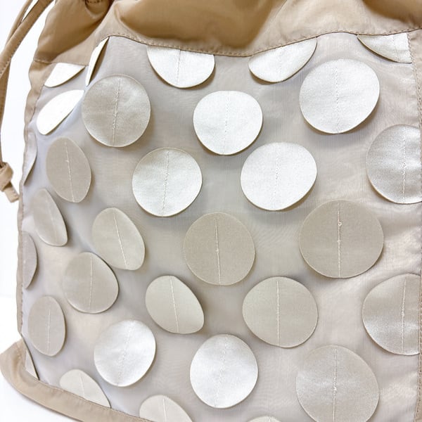 サテンモチーフがミシンで縫いとめてあります